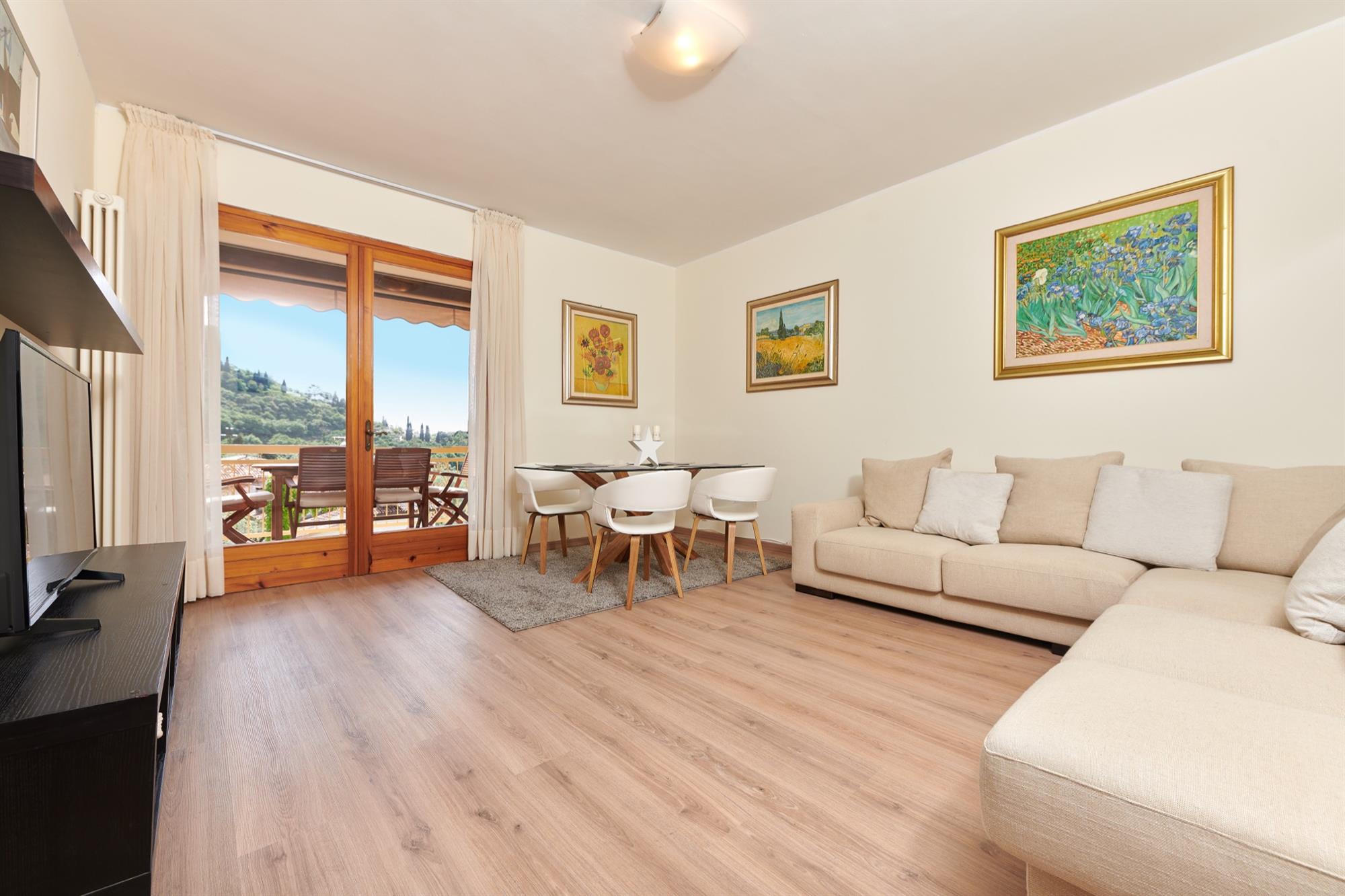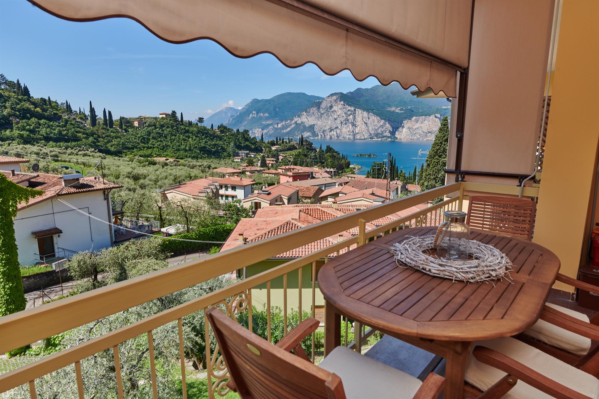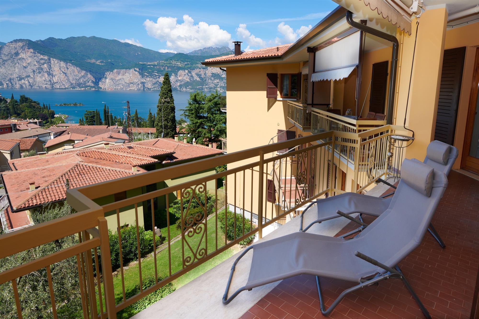 The apartment is located 900 meters from the town center and beach in a fantastic location, away from the hustle and bustle with a unique view of the lake and the "Monte Baldo". 100 SQM Apartment for 4 people in a nice position, panoramic terrace, on the 3rd floor (no lift), very quiet area, AIR-CONDITIONING with 2 double bedrooms, 2 bathrooms, living room with satellite TV, kitchen, washing machine room, each room with Balcony sea view, 1 garage and use of the swimming pool from our hotel "Villa Smeralda" next door.